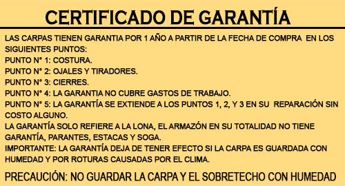 Frentes y doble techos: Confeccionado en tela algodón y poliéster racleado impermeable de alta resistencia.